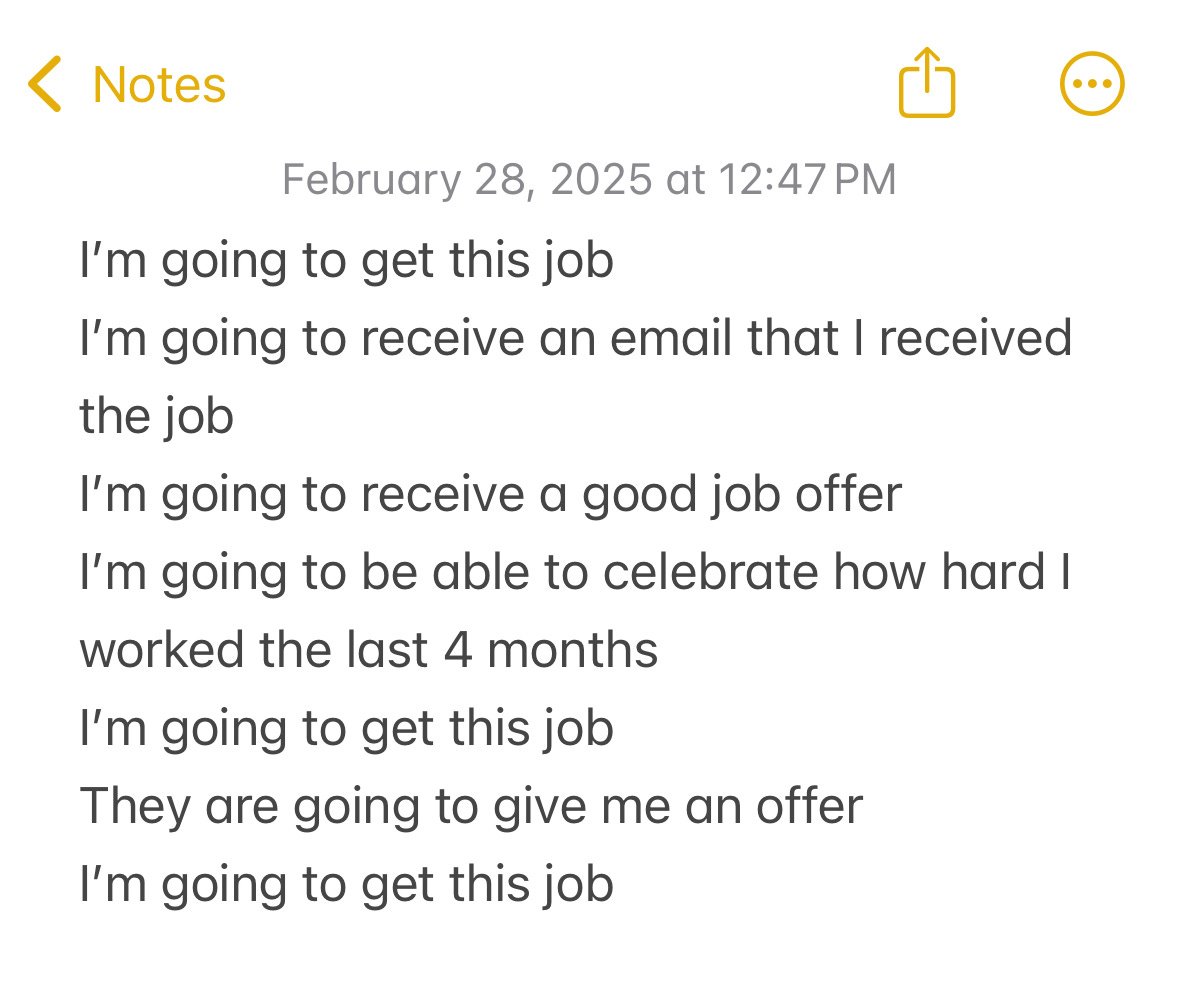 On my half birthday (February 28th), I received word that I was being offered a full-time marketing role at Vevo. It was a brief 5-minute call following an in-person presentation I gave at their office in Times Square the prior week. Before said call, this is what my notes app looked like: