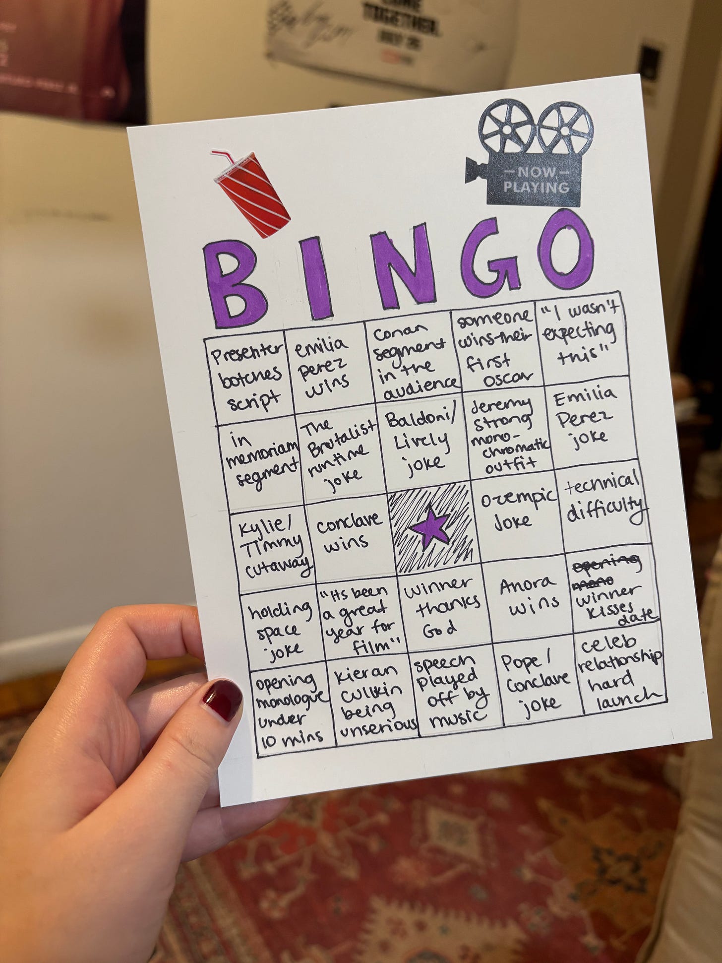 That Sunday was the Oscars and Madi and Julie hosted an Oscars watch party, complete with Oscars bingo and a prediction ballot that made me frankly nervous having only seen three of the Oscar nominated films at the time.