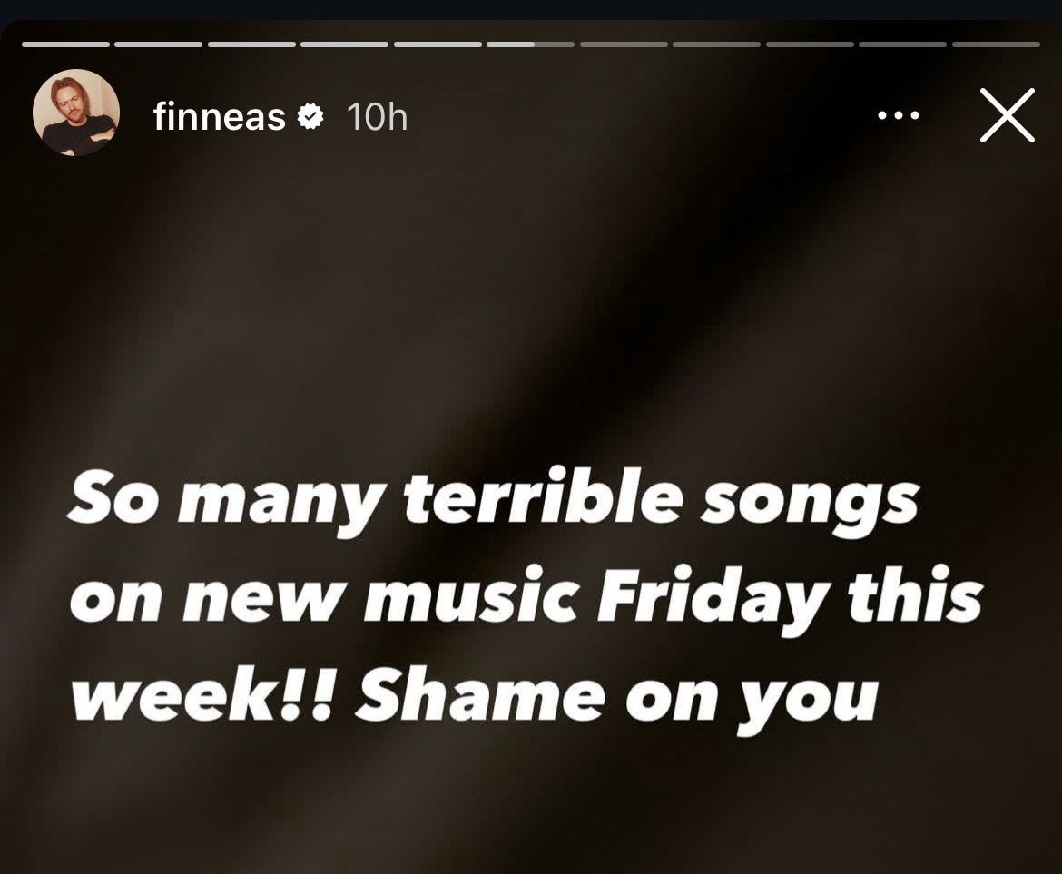 I will always resent the notion that there’s simply no good, new music and it’s time to throw in the towel. Any time someone voices their longing for the past in regards to music, I understand it to an extent. But this IG story from Finneas gives me the same energy as that one crotchety guy you know who exclusively listens to classic rock and refuses to broaden his horizons. The particular New Music Friday in question was the one on which Morgan Wallen released his snore-fest collab with Tate McRae. So while I see how that one may have cast a dark shadow over the entire day, I can also say that there’s so much to be excited about in music right now and if you’re not excited, you’re not doing enough purposeful discovery. I’m currently anxious, nearly biting my nails waiting for the official Spotify release of up-and-coming TikTok phenom Eli’s “Marianne” (out May 30th) – which I’ve listened to on loop on Soundcloud for the time being. You can find her at @journalofadoll on TikTok. Blondshell put out a near-perfect alt rock album on April 30th. Jensen McRae is singing and writing circles around our current lot of singer-songwriter girlies, especially on her new-yet-timeless country ballad “Savannah”. Not to mention that Finneas is terribly out of his league saying “shame on you”. As if his solo work rises to the top at all. And I say that as someone who actually likes a few songs off his most recent album. A bad look for Billie’s brother, who I have held a fill of respect for as a producer.